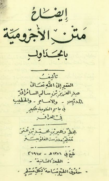 حمل [إيضاحُ مَتن الآجرّوميّةِ بالجَداول] عبدالعزيز بن سالم السامرائي